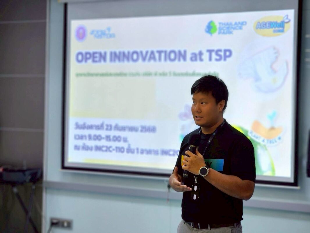 เมื่อวันอังคารที่ 23 กันยายน 2568 ที่ผ่านมา อุทยานวิทยาศาสตร์ประเทศไทย (TSP) ร่วมกับบริษัท พี พลัส วี อินเตอร์เนชั่นแนล จำกัด ได้จัดกิจกรรม “OPEN INNOVATION at TSP” ขึ้น ณ ห้อง INC2C–110 ชั้น 1 อาคาร INC2C ที่อุทยานวิทยาศาสตร์ประเทศไทย บรรยากาศภายในงานเต็มไปด้วยความคึกคักของนักวิจัย จากทั้งหน่วยงานภาครัฐ และภาคเอกชน เช่น บริษัท EQ Medical Solution, บริษัท Eternal Sakata INX, ทีมงานวิจัยจาก Nanotec HNMP/ACT เป็นต้น มาเข้าร่วมเพื่อนำเสนอผลงานวิจัยและนวัตกรรมใหม่ๆ สำหรับโอกาสในการต่อยอดและพัฒนาบริษัทเพื่อการนำไปใช้งานจริง